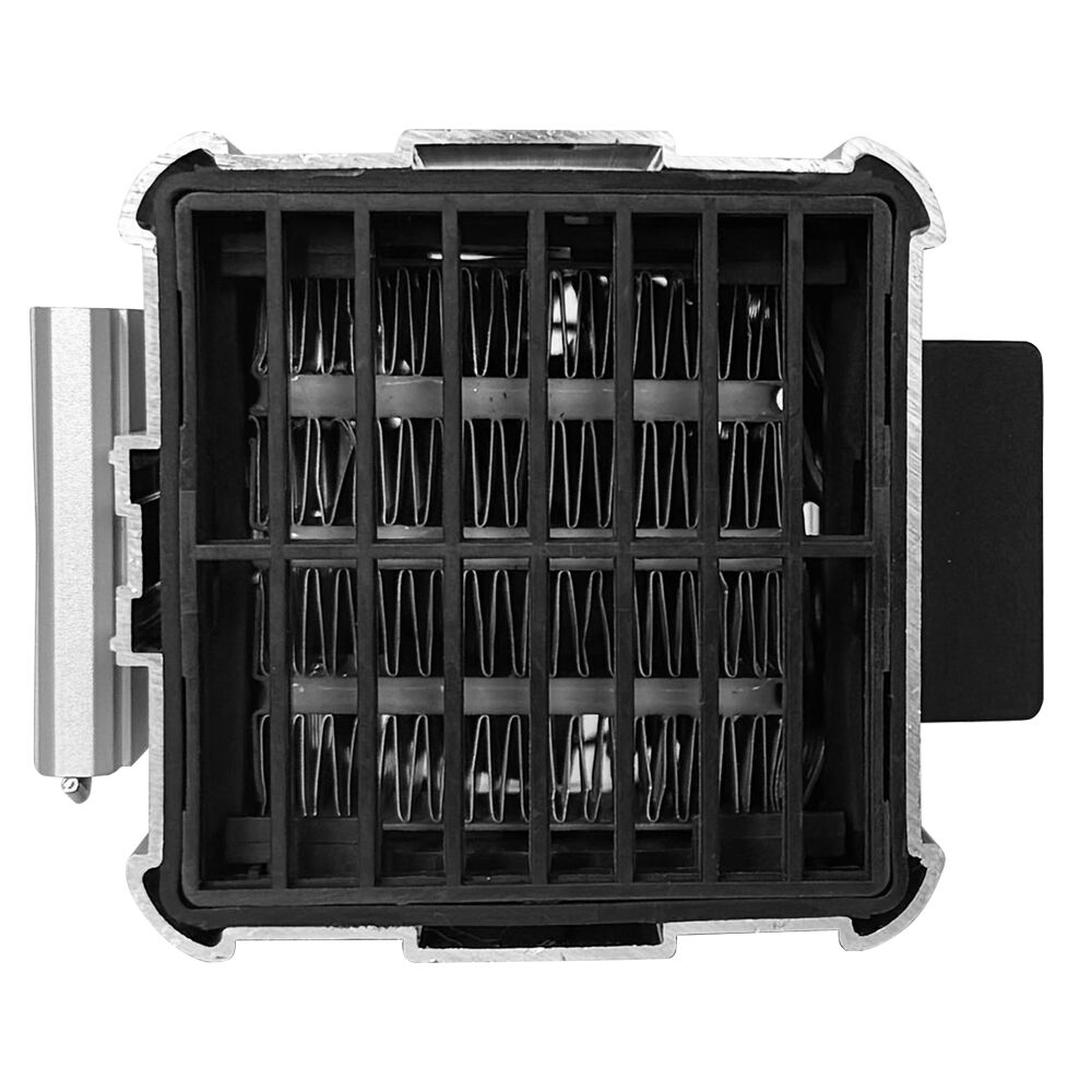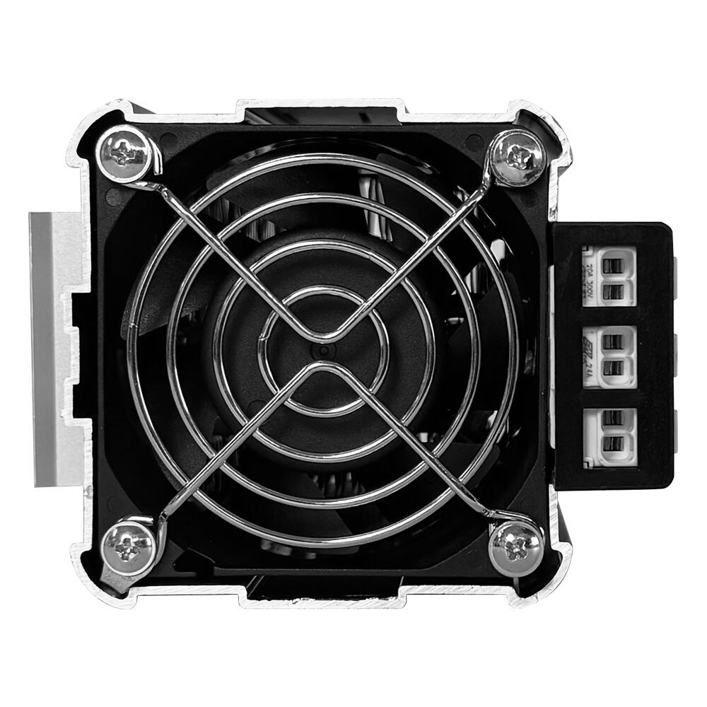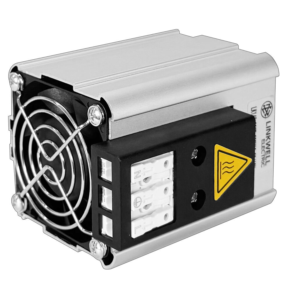 Kompakter Lüfterheizer verhindert die Bildung von Kondenswasser. Der integrierte leistungsstarke Axiallüfter sorgt für eine erzwungene Luftzirkulation und gewährleistet somit eine gleichmäßige Temperatur im Gehäuse.